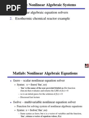 The video can also. The user must supply a routine to evaluate the function vector. The MATLAB routine fsolve is used to solve sets of nonlinear algebraic equations using a quasi-Newton method.