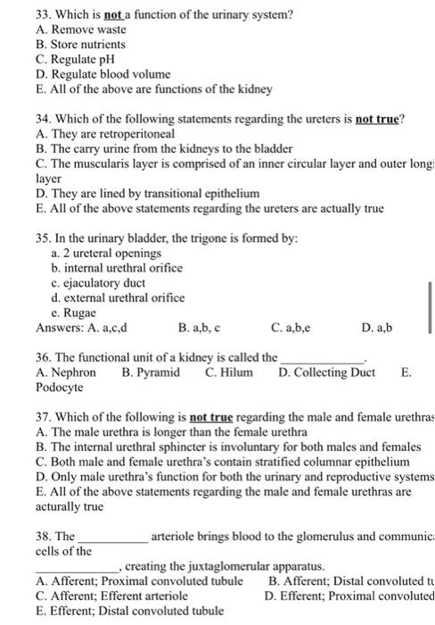 It produces erythropoietin which stimulates red blood cell formation. Which of the following statements about the urinary system is INCORRECT. Regulation of leukocyte production. A regulation of extracellular fluid osmolarity. Which of the following is not a feature of the nephrotic syndrome. A Proteinuria greater than 5 g day b Hypercholesterolaemia c Microscopic haematuria d Peripheral oedema e Hypoalbuminaemia 31. The apocrine sweat glands found in the genital and axillae area secrete water salts cellular waste and fatty substances onto the skin through the hair shafts during perspiration. Amaintenance of blood pressure bremoval of metabolic waste cregulation of acid-base balance dregulation of leukocyte production. The urinary system is home of.